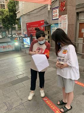 旅游分公司黨員張菁(右一)參加社區(qū)抗疫維護(hù)秩序