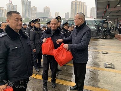 南充市交通運輸局一級調(diào)研員張世民向駕駛員贈送春運禮包
