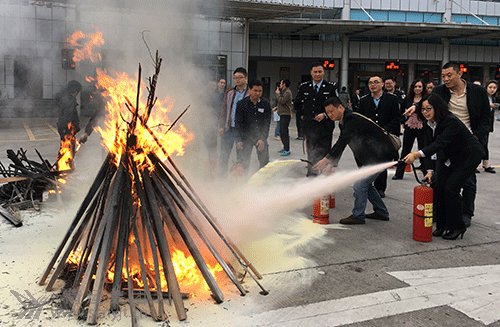 員工參加了現場應急消防演練的情景