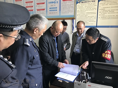 省公安廳治安總隊調(diào)研員蘭金東(左三) 檢查西充客運中心反恐防暴軟件資料