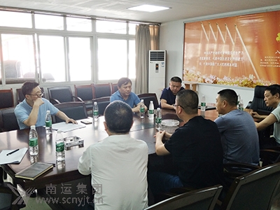 省運(yùn)管局副局長(zhǎng)張洪(左二)聽取儀隴分公司經(jīng)理林勁松關(guān)于汛期安全生產(chǎn)工作落實(shí)情況的匯報(bào)。